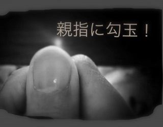 右手親指に現れらた厄よけ(?)勾玉跡。。。。